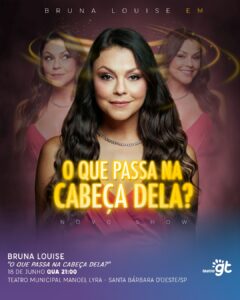 E o trabalho não para. Bruna Louise participou recentemente do Reality Show LOL Brasil, projeto de sucesso da Prime Vídeo e é sempre destaque na programação do Comedy Central. Está na Netflix com o especial Lugar de Mulher e, ainda esse ano, retorna ao streaming com o seu solo, disponível para todo o planeta, o Especial Demolição.
