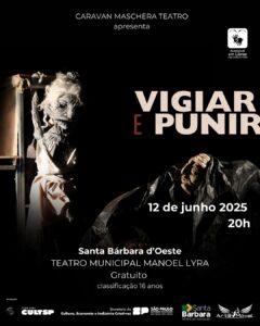 Descrição do Espetáculo: “Vigiar e Punir” é uma adaptação do influente trabalho de Michel Foucault, que explora o poder e a disciplina nas sociedades modernas. O espetáculo utiliza bonecos, bufões e comicidade para ilustrar como as práticas de vigilância e controle moldam a vida dos indivíduos e como a sensação de impotência é gerada pela internalização das normas e pela vigilância constante.